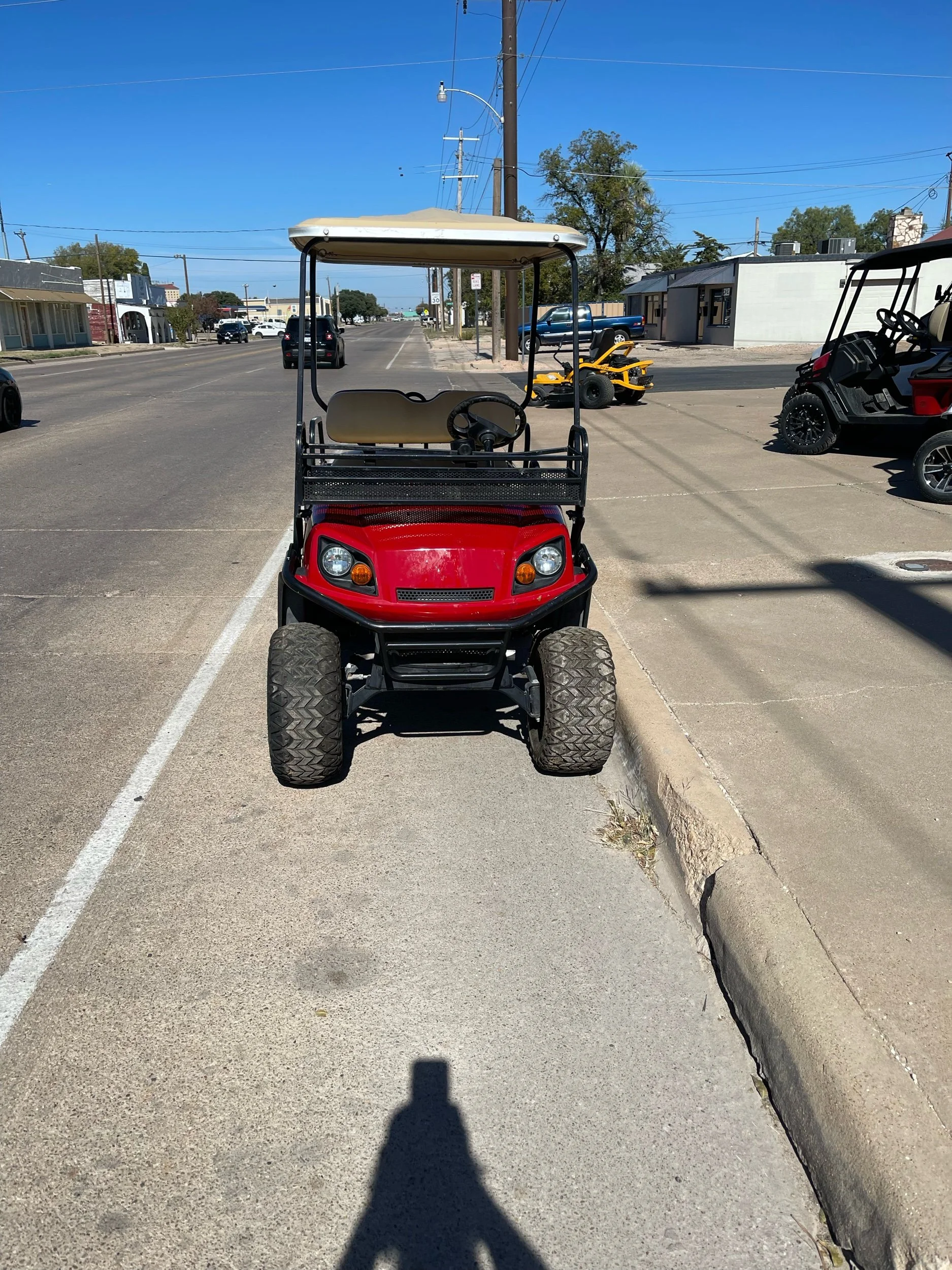 Fully serviced Kawasaki motor, new starting battery, Clay’s basket, headlights, 4 in lift kit, 22 in tires, 80 in roof, and backseat.