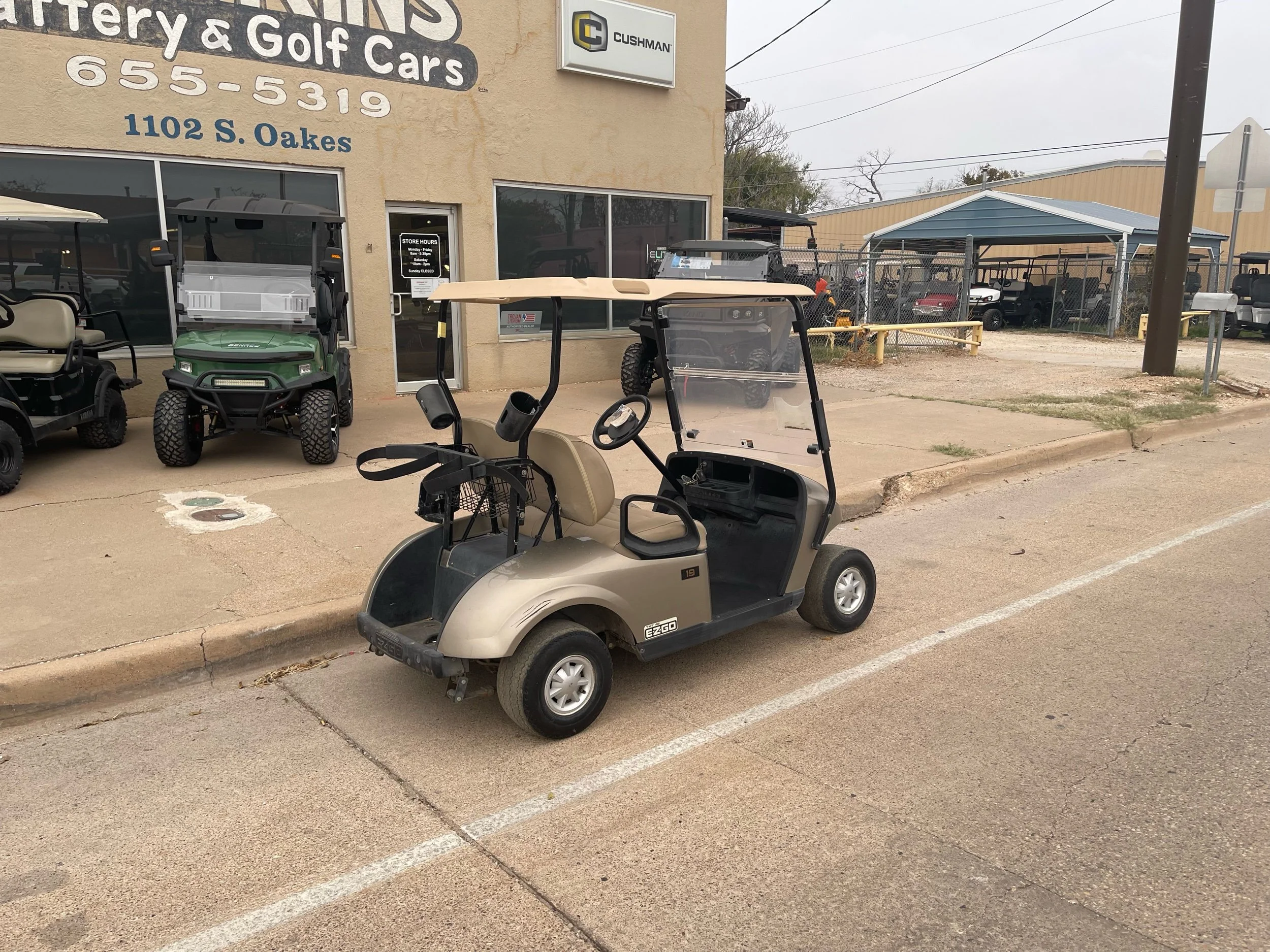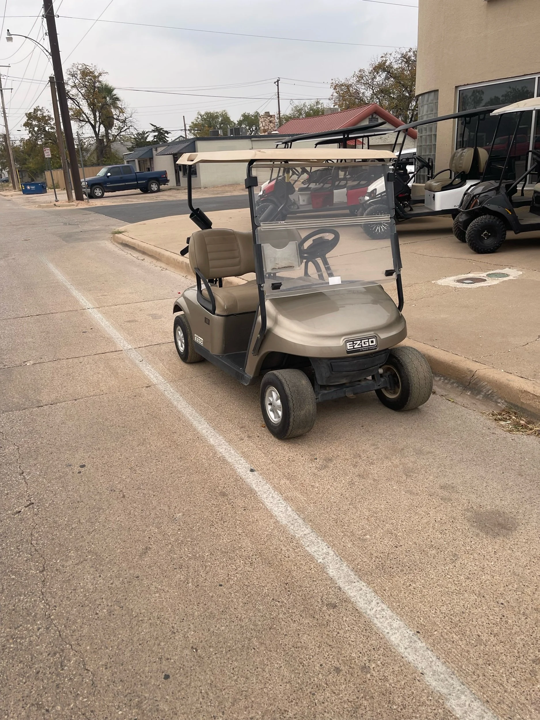 Products › 2018 Almond Pearl EZGO TXT-Electric Image 1 of 3 Image 2 of 3 Image 3 of 3 2018 Almond Pearl EZGO TXT-Electric $2,700.00 1 yo Trojan batteries w/ charger, windshield, premium seats, and bag attachment. Quantity: Add To Cart Added! 1 yo Trojan batteries w/ charger, windshield, premium seats, and bag attachment.