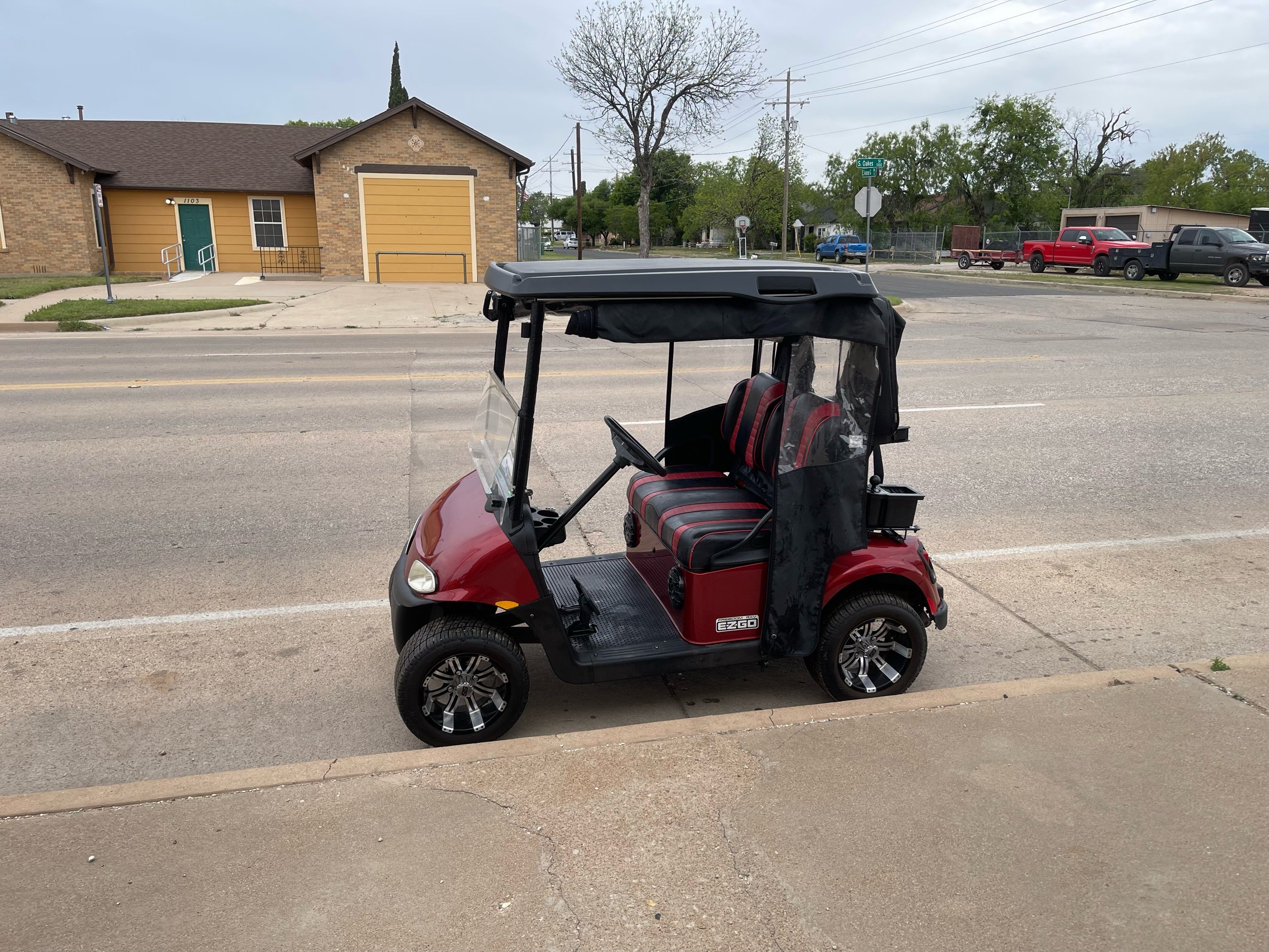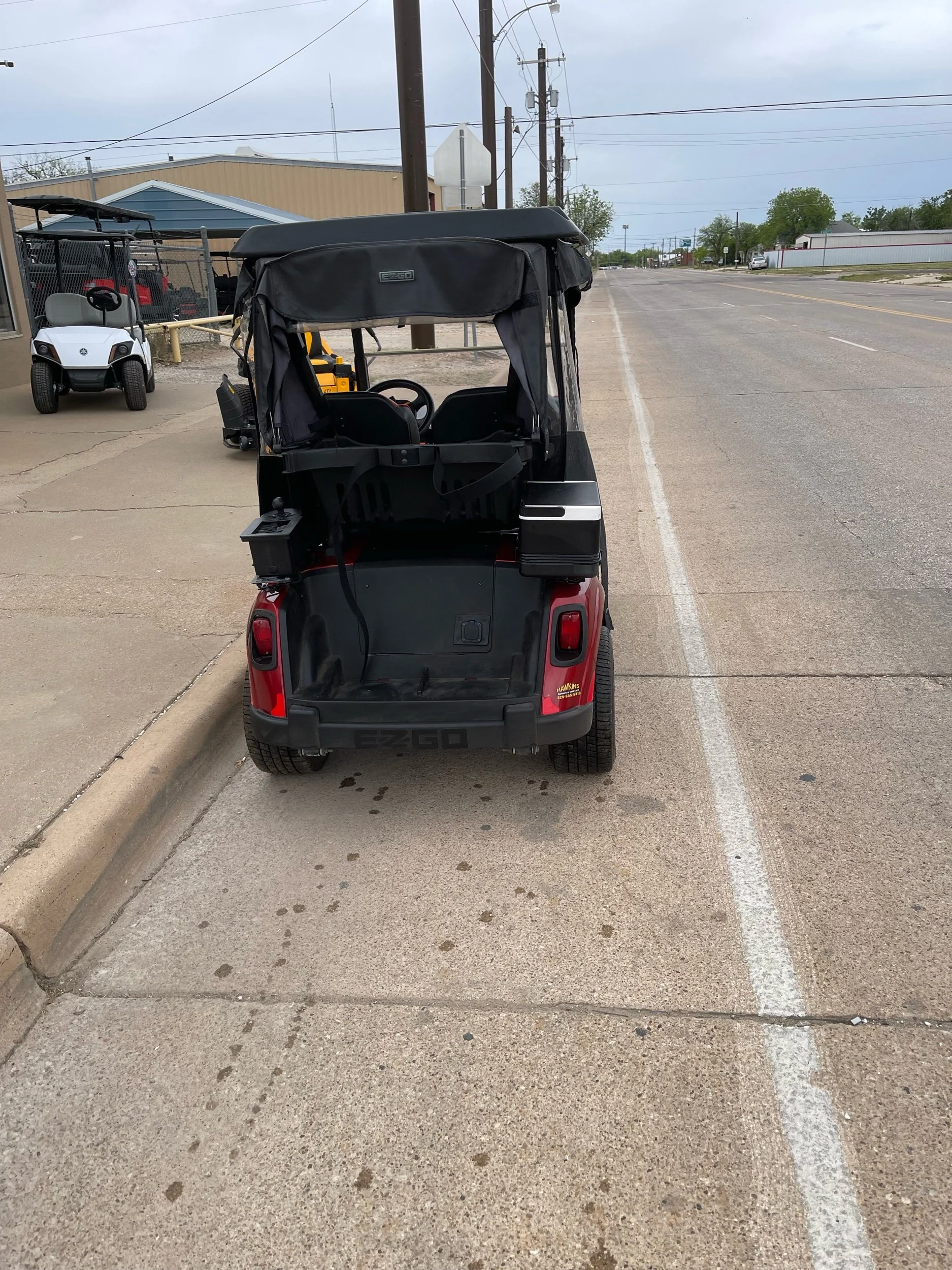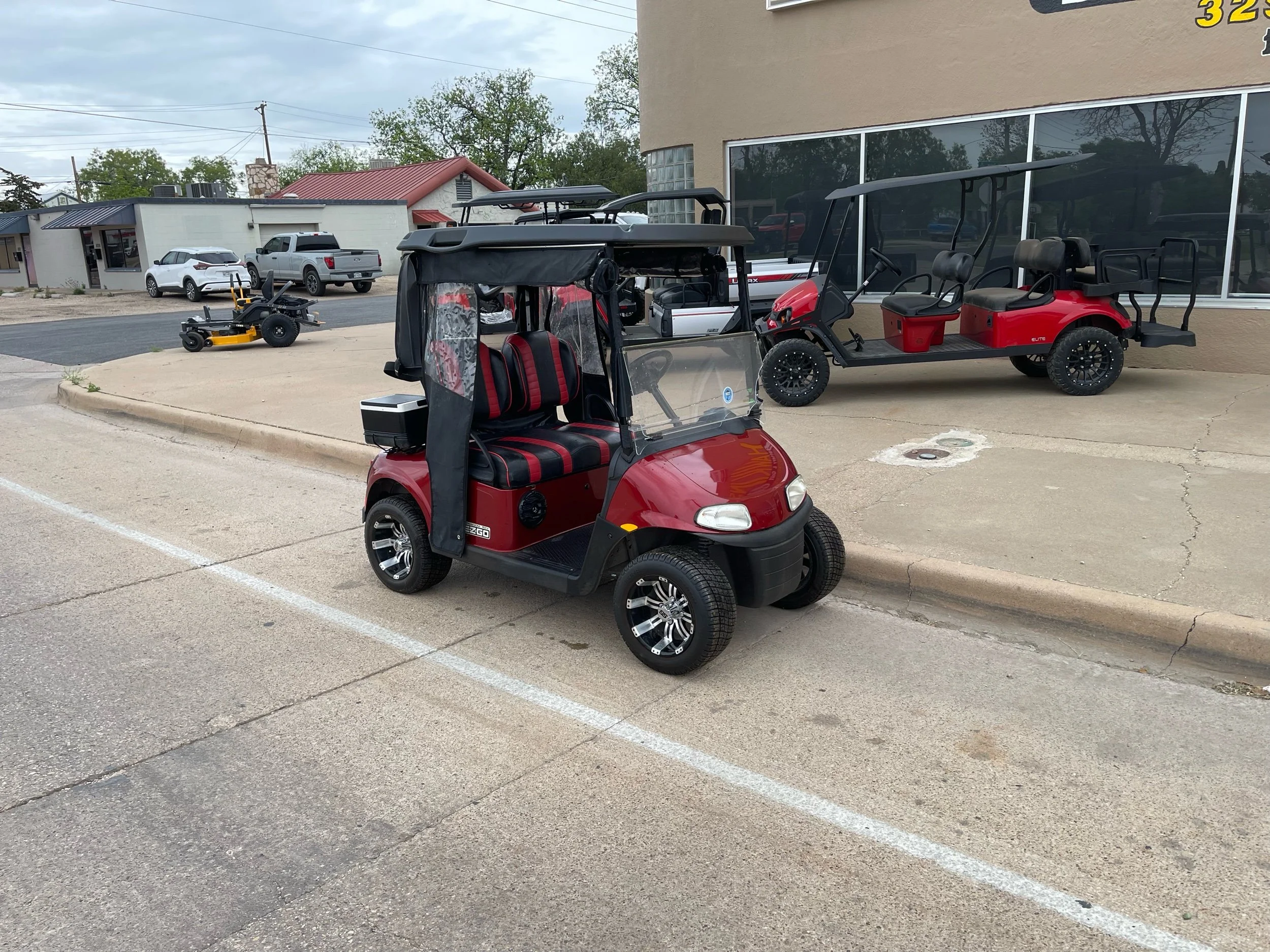 New lithium battery w/ charger, track mounted enclosure, dry club cover, premium seats, custom wheels and tires, stereo, windshield, headlights and taillights, ball washer, cooler, and bag attachment.