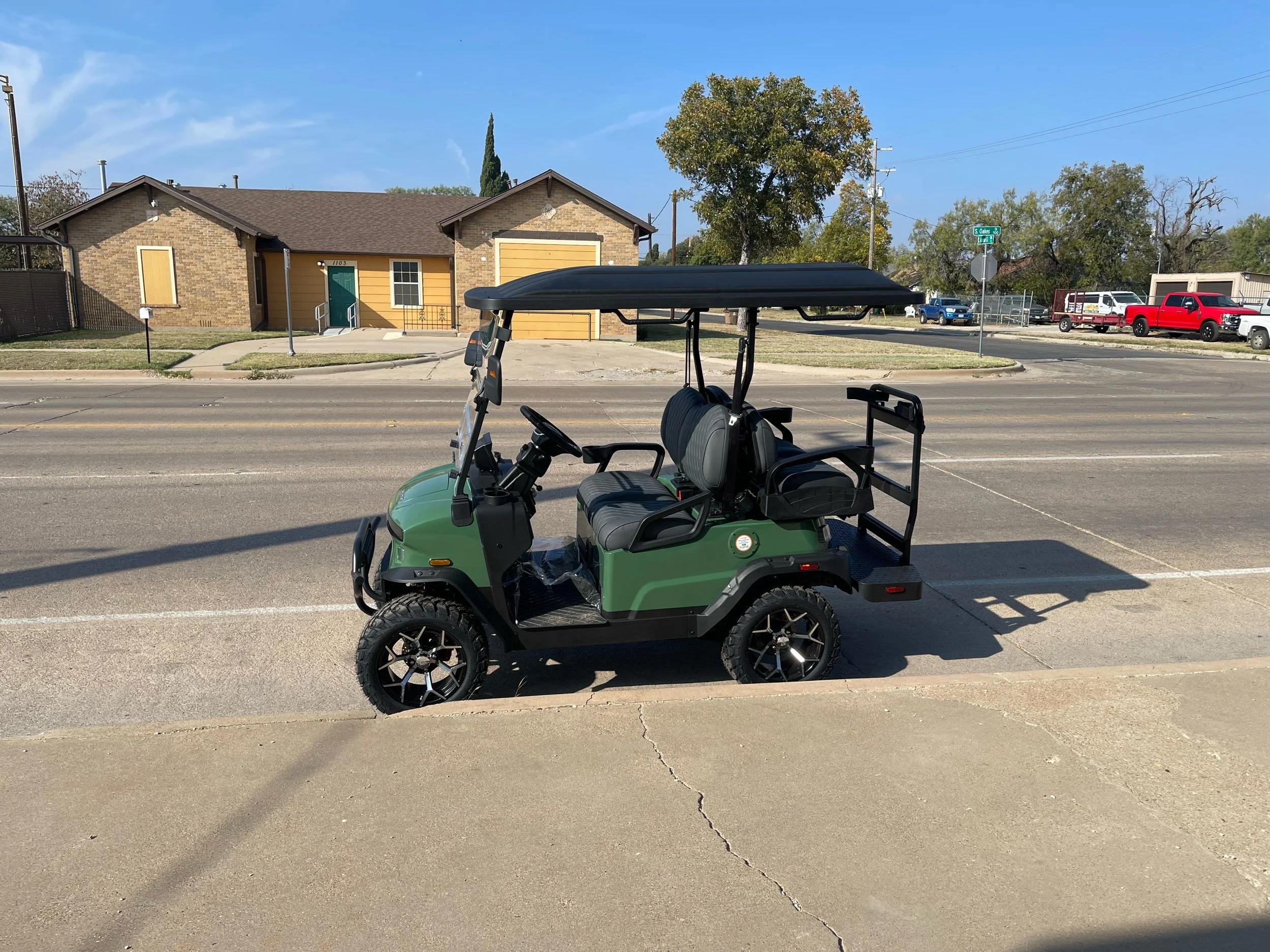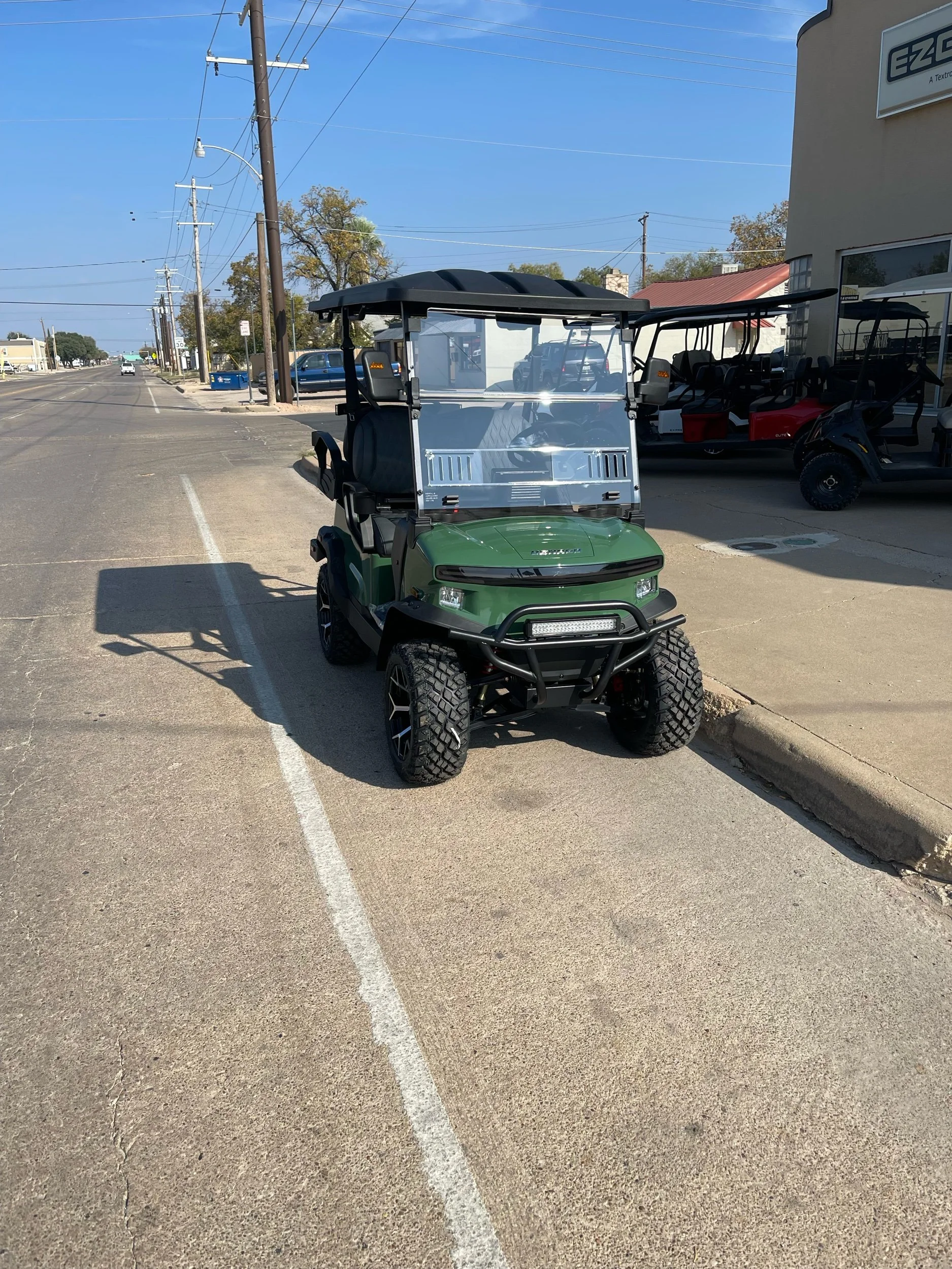Lithium battery, windshield, side mirrors, seatbelts, screen w/ Bluetooth stereo, blinkers, seatbelts, USB ports, extended roof, and safety bar.