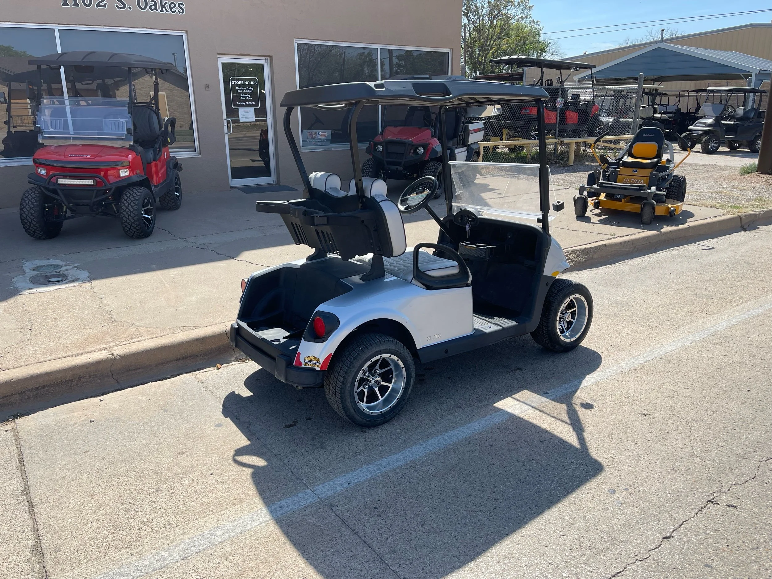 Lithium battery w/ charger, headlights and taillights, Bluetooth stereo, volt meter, windshield, USB, horn, premium seats, custom wheels and tires, and bag attachment.