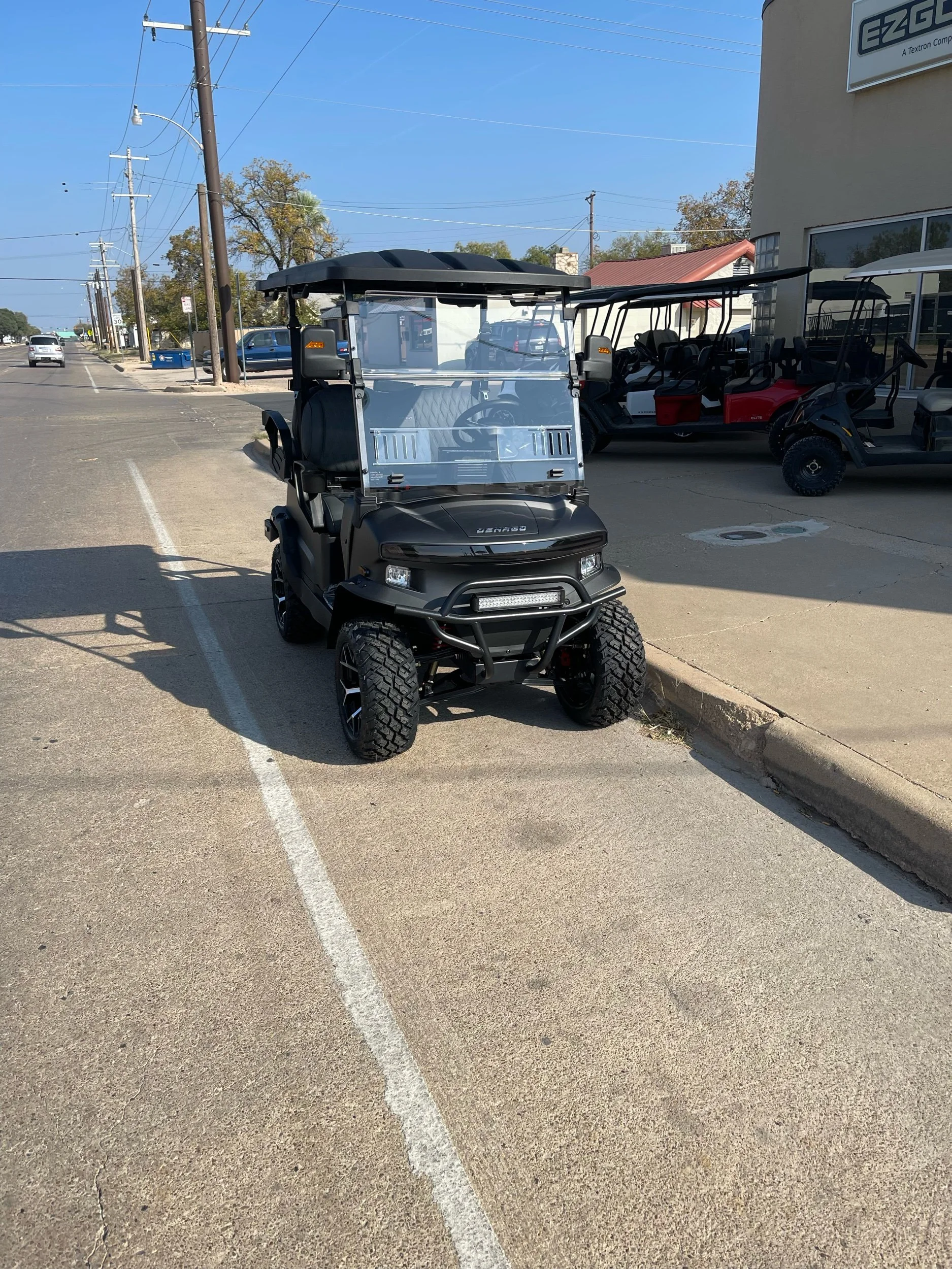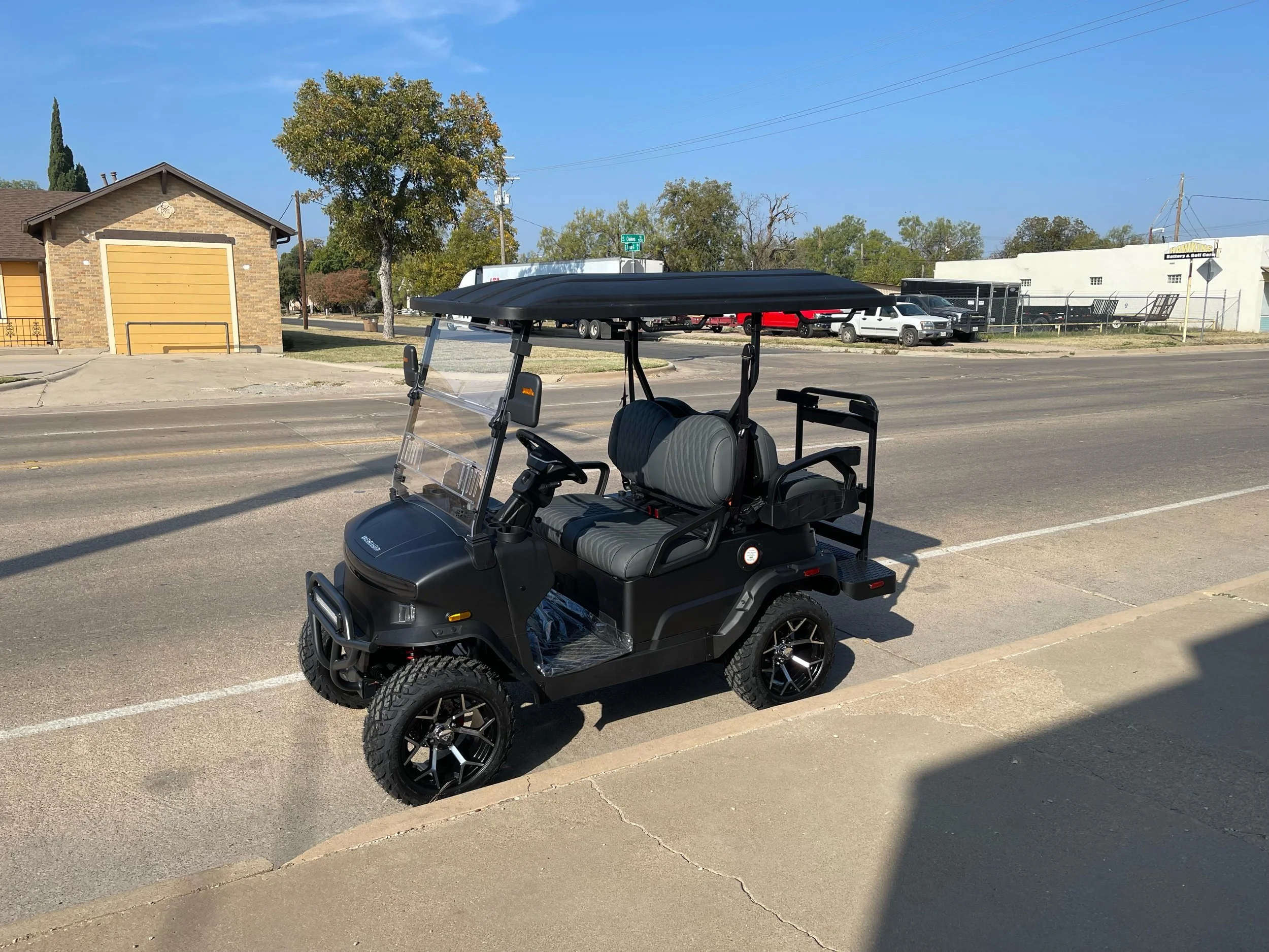 Lithium battery, windshield, side mirrors, seatbelts, screen w/ Bluetooth stereo, blinkers, seatbelts, USB ports, extended roof, and safety bar.